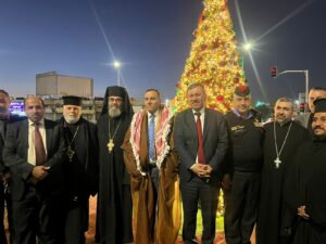 وقال المحافظ خلال الاحتفال ” نحتفل اليوم بإضاءة شجرة عيد الميلاد المجيد، احتفالا بعيد الميلاد وقرب حلول رأس السنة الميلادية.