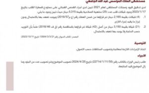 اخبار ع النار-كشف تقرير ديوان المحاسبة لسنة 2023، أنه لدى تدقيق قيود وسجلات مستشفى الملك المؤسس عبدالله الجامعي تبين عند اجراء الفحص الفجائي على مستودع قسطرة القلب بتاريخ 17-1-2023 عن وجود 25 شبكات قلبية منتهية الصلاحية بقيمة 5.315 دينار.