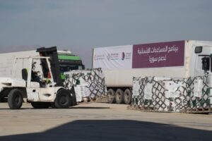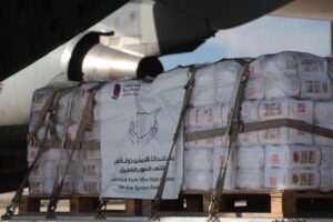 وتأتي هذه المساعدات استكمالا للجسر الجوي الذي تسيره دولة قطر لإغاثة الأشقاء في الجمهورية العربية السورية الشقيقة والمساهمة في معالجة أوضاعهم الإنسانية.