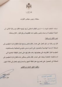 اخبار ع النار-طالب النائب الدكتور هايل عياش بضرورة العمل على اصدار نظام خاص لأبناء قطاع غزة المقيمن على الاراضي الاردنية وذلك من خلال السماح لهم بالحصول على تامين صحي حكومي للعلاج في المستشفيات الحكومية لأبناء غزة واصدار نظام خاص باستثناء ابناء غزة من الحصول على تصاريح عمل لكافة المهن والسماح لهم بالعمل في كافة المهن. ونظرا للظروف الاقتصادية التي يعيشونها وعدم قدرتهم على تحمل نفقات المعالجات الطبية داخل المستشفيات الحكومية