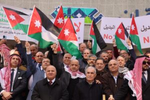 وشارك بالوقفة التي تخللها رفع الإعلام الأردنية وشعارات تؤكد الرفض التام للتهجير والتوطين والوطن البديل، وتؤكد الوقوف خلف القيادة الهاشمية، رؤساء غرف تجارية وممثلو القطاعات التجارية ورؤساء نقابات وجمعيات أصحاب العمل وأصحاب أعمال وشركات.