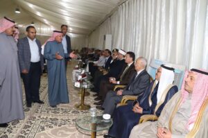 مندوبا عن جلالة الملك عبدالله الثاني، وسمو الأمير الحسين بن عبدالله الثاني، ولي العهد، قدم رئيس الديوان الملكي الهاشمي يوسف حسن العيسوي، اليوم الخميس، واجب العزاء إلى عشائر الخضير والسلايطة والخزاعلة والحجاج والحتاملة.
