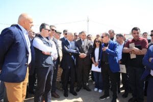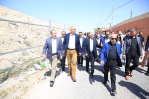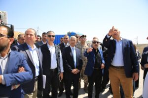 *الزرقاء – 10 أيار 2025-* تفقد رئيس الديوان الملكي الهاشمي، يوسف حسن العيسوي، رئيس لجنة متابعة تنفيذ مبادرات جلالة الملك، اليوم السبت، سير العمل في تنفيذ مشاريع المبادرة الملكية لإعادة تأهيل وتطوير منطقتي تلال الفوسفات (المرحلة الثانية) ووادي العش، وذلك بحضور وزراء الإدارة المحلية المهندس وليد المصري، والزراعة المهندس خالد الحنيفات، والصناعة والتجارة المهندس يعرب القضاة، والبيئة الدكتور معاوية الردايدة، ومحافظ الزرقاء الدكتور فراس أبو قاعود، ومدير الإدارة الملكية لحماية البيئة العميد تامبي حمكري ورئيس غرفة صناعة الزرقاء فارس حمودة ورئيس بلدية الرصيفة شادي الزيناتي ونائب رئيس بلدية الزرقاء فتحي الخلايلة