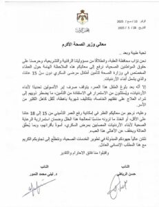 اخبار ع النار-رفع نائبا محافظة العقبة، حسن الرياطي والدكتورة لبنى محمد النمور، مذكرة إلى وزير الصحة، طالبا فيها بتمديد العمر التأميني لأبناء الأردنيات المصابين بمرض السكري من 15 إلى 18 عاما على الأقل.