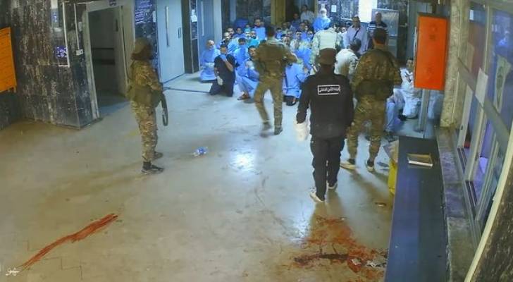 الفيديو، الذي نقله المرصد السوري لحقوق الإنسان، يُظهر عشرات الأشخاص يرتدون زيّ المستشفى، جاثمين على ركبهم، قبل أن يتم سحب أحدهم بعنف، والاعتداء عليه، ثم إعدامه برصاص مباشر.