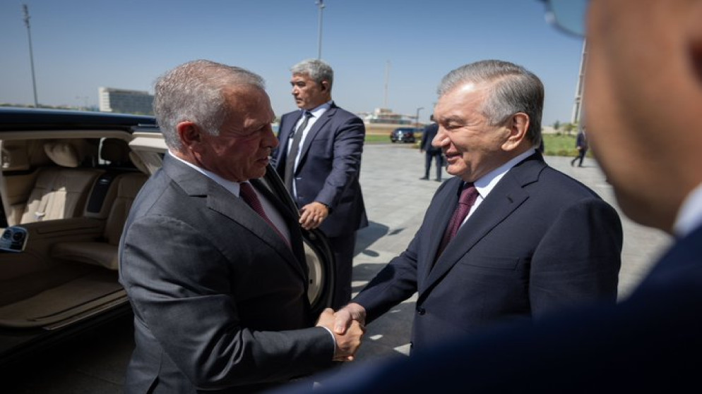 اخبار ع النار-استقبل رئيس جمهورية أوزبكستان شوكت ميرضيائيف اليوم الثلاثاء جلالة الملك عبدالله الثاني لدى وصوله مركز المؤتمرات في سمرقند.