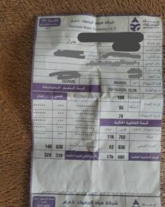 وقال المواطن، إن أسرته تتكون من زوجته وطفله الوحيد، ويستخدمون خزان مياه واحد فقط، وأن الارتفاع الكبير في قيمة الفاتورة يشي بخطأ ما.