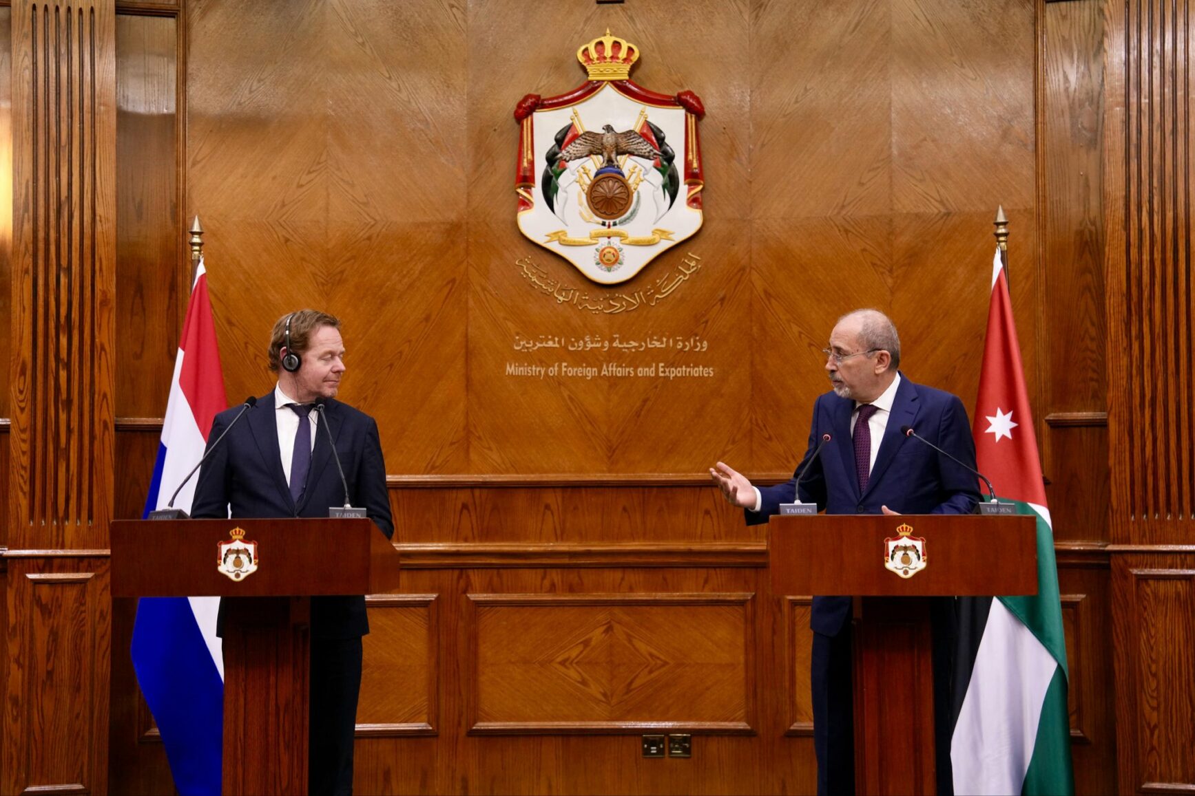 وأشار إلى أن العام المقبل نحتفل بـمرور ٧٥ عاما على تأسيس العلاقات الدبلوماسية بين الأردن وهولندا. على المستوى الثنائي علاقاتنا في تطوّر مستمر.