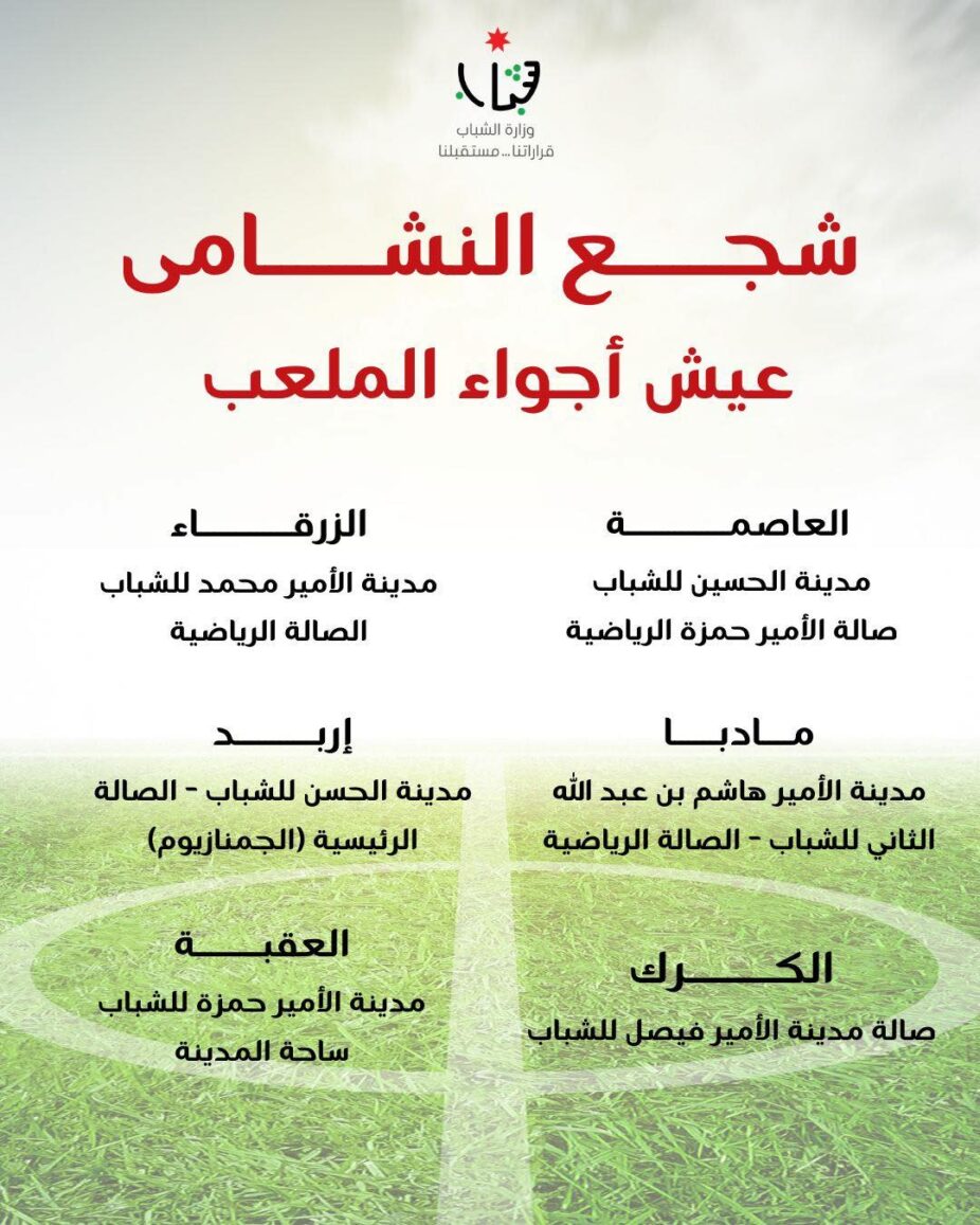 اخبار ع النار-أعلنت وزارة الشباب عن تجهيز صالات المدن الرياضية لعرض مباريات المنتخب الوطني لكرة القدم خلال مشاركته في بطولة كأس العرب على شاشات عملاقة.