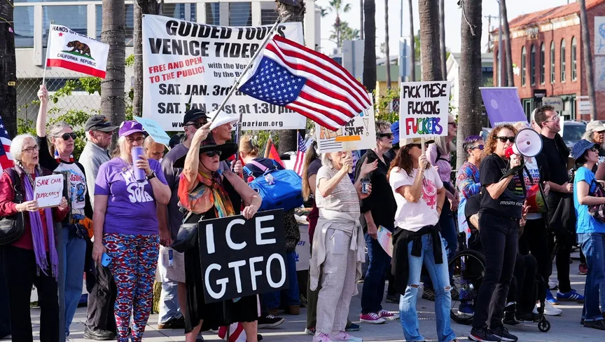 وفي الذكرى السنوية الأولى لولاية ترامب الثانية، اندلعت احتجاجات في أنحاء الولايات المتحدة اعتراضا على حملته الصارمة على الهجرة، التي أثارت غضبا بعد أن قام عناصر اتحاديون خلال الأسابيع الماضية بجرّ مواطنة أميركية من سيارتها وقتلوا امرأة تبلغ من العمر (37 عاما) تُدعى ريني جود في منيابوليس.