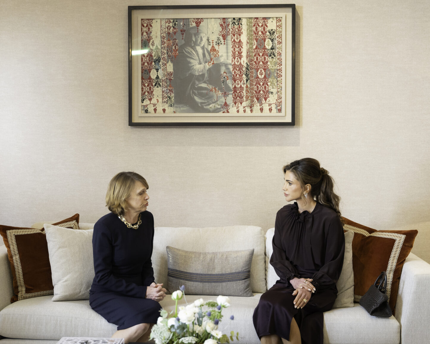 اخبار ع النار-التقت جلالة الملكة رانيا العبدالله اليوم في قصر الحسينية بعمان السيدة إلكه بودنبندر زوجة الرئيس الألماني فرانك فالتر شتاينماير، وذلك في إطار زيارة عمل يقوم بها الرئيس الألماني وعقيلته إلى المملكة.