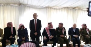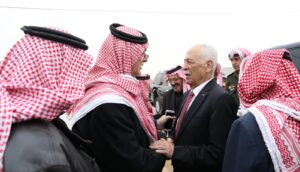 ونقل العيسوي، خلال زيارته بيت عزاء الفقيد في منطقة الموقر بمحافظة العاصمة، تعازي ومواساة جلالة الملك وسمو ولي العهد إلى ذوي الفقيد وإلى عموم قبيلة بني صخر وعشيرة الخريشا، سائلا الله العلي القدير أن يتغمده بواسع رحمته.